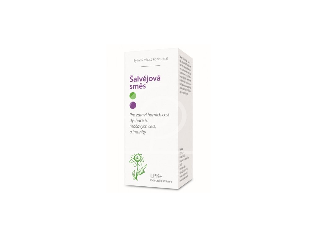 Šalvějová směs obsahuje byliny, které podporují imunitní systém (šalvěj, třapatka, řepík, zlatobýl, heřmánek, měsíček) a zdravé dýchání (přeslička), přispívají k normální funkci horních cest dýchacích (řepík, třapatka), napomáhají udržovat normální funkci dýchacího systému (heřmánek, yzop, řebříček) a k pocení (šalvěj). Stimulují činnost ledvin a močové soustavy (kopřiva, řepík, řebříček, přeslička, zlatobýl), podporují vylučování vody z organismu (kopřiva), napomáhají udržovat normální stav kostí a kloubů a podporují jejich pružnost (přeslička), dodávají energii a vitalitu (kopřiva, přeslička) a přispívají k lepšímu odpočinku a spánku (heřmánek). Směs je vhodné užívat zejména v chladnějších obdobích a při vodáctví, kdy může snadno dojít k prochladnutí.
