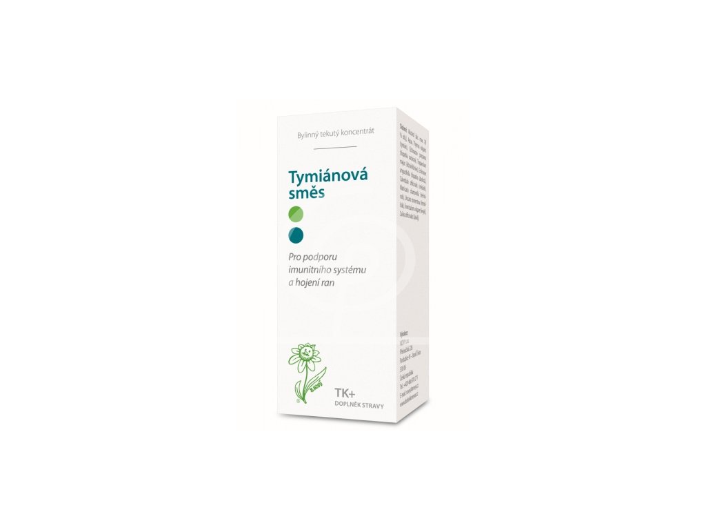 Tymiánová směs obsahuje byliny, které posilují imunitní systém – přirozenou obranyschopnost organismu (tymián, třapatka nachová i úzkolistá, řemdihák, heřmánek), podporují funkci horních cest dýchacích (třapatka nachová i úzkolistá), funkci dýchacího systému (heřmánek) a mají vliv na sekreci hlenu (fenykl). Pomáhají udržovat zdraví močových cest (třapatka nachová i úzkolistá) a podporují normální funkci jater a střev (měsíček).