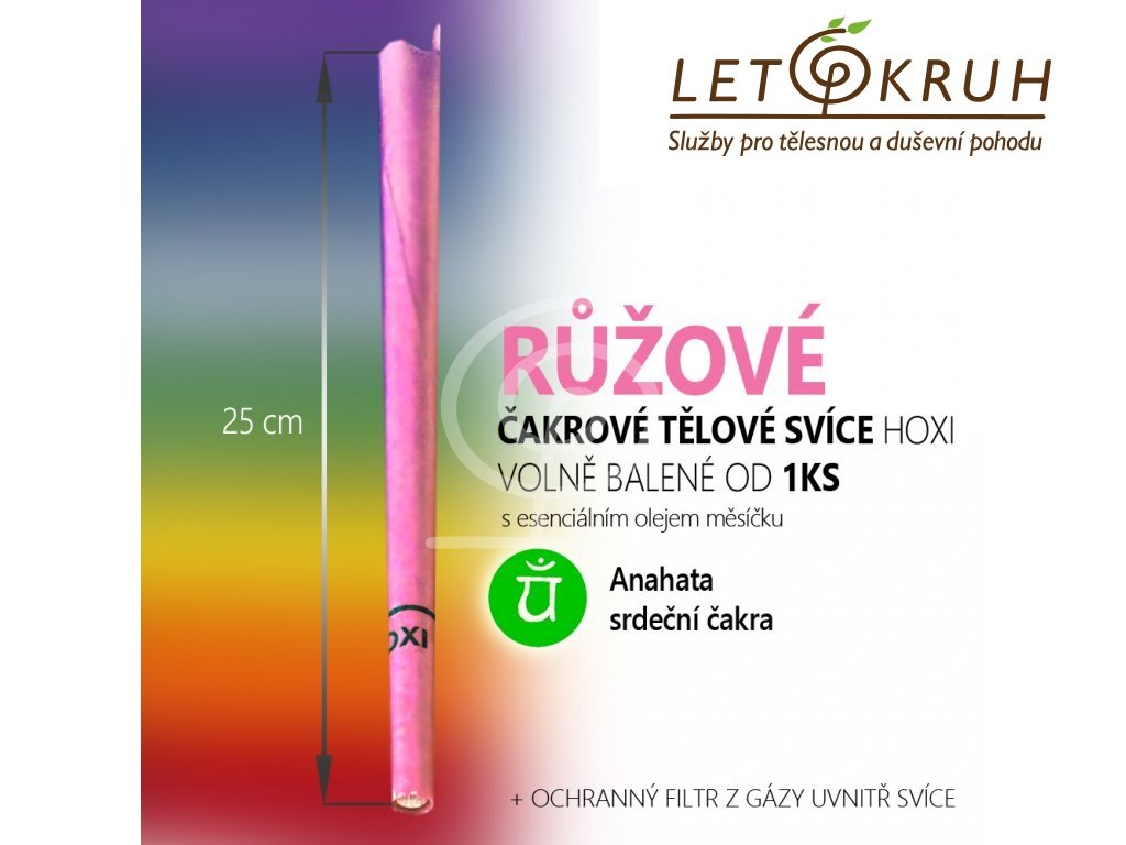 Jedna z čakrových tělových svící HOXI spolu se zelenou čakrovou tělovou svící pro harmonizaci srdeční čakry a celé této oblasti. Růžová tělová svíce je vhodná na harmonizaci emočních bloků a jako doplněk při práci s energetickými systémy. Neaplikujte přímo na srdce! Růžová tělová svíce je vhodná také pro práci na úrovni druhé čakry, kde působí na zjemnění emocí, zklidnění a také při gynekologických problémech.