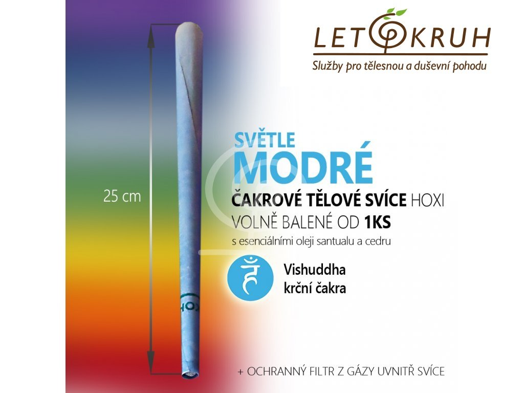 Ručně vyrobená světle modrá čakrová tělová svíce HOXI.