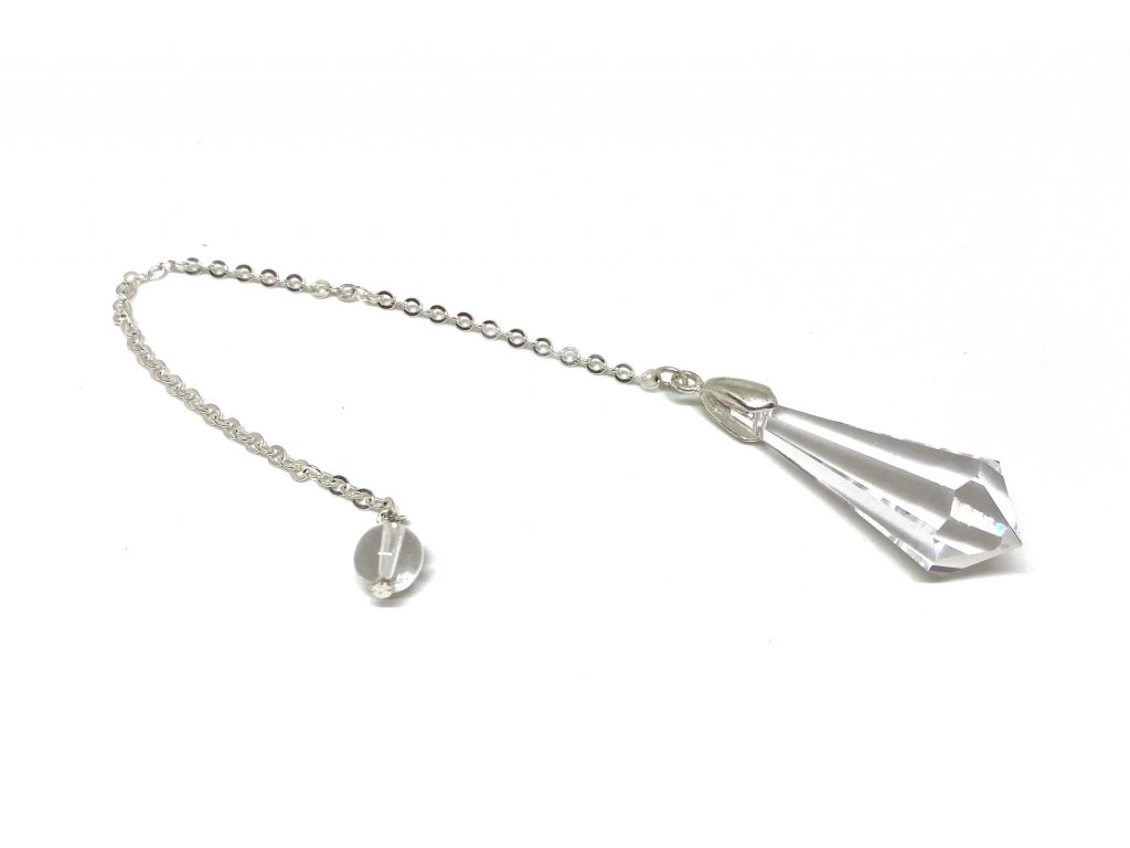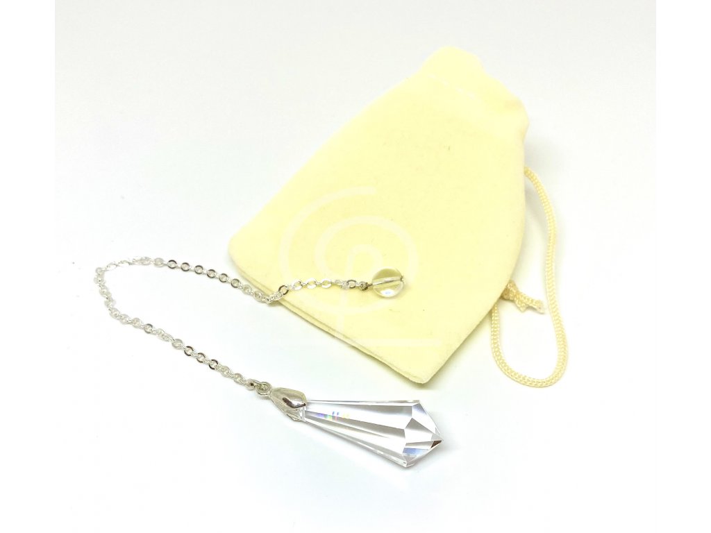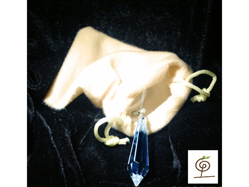 Křišťálové kyvadlo s kuličkou na držení a dárkovým pytlíčkem krémové barvy.Kyvadlo má délku cca 38 mm, řetízek cca 15 cm.