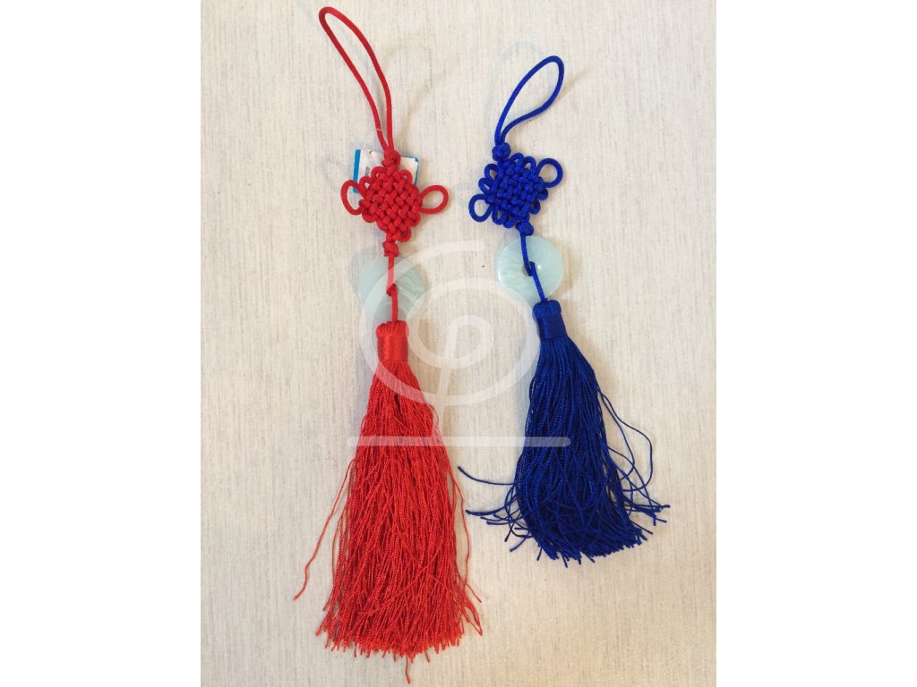 Přívešek s nekonečným uzlem a donitrm z jadeitu.