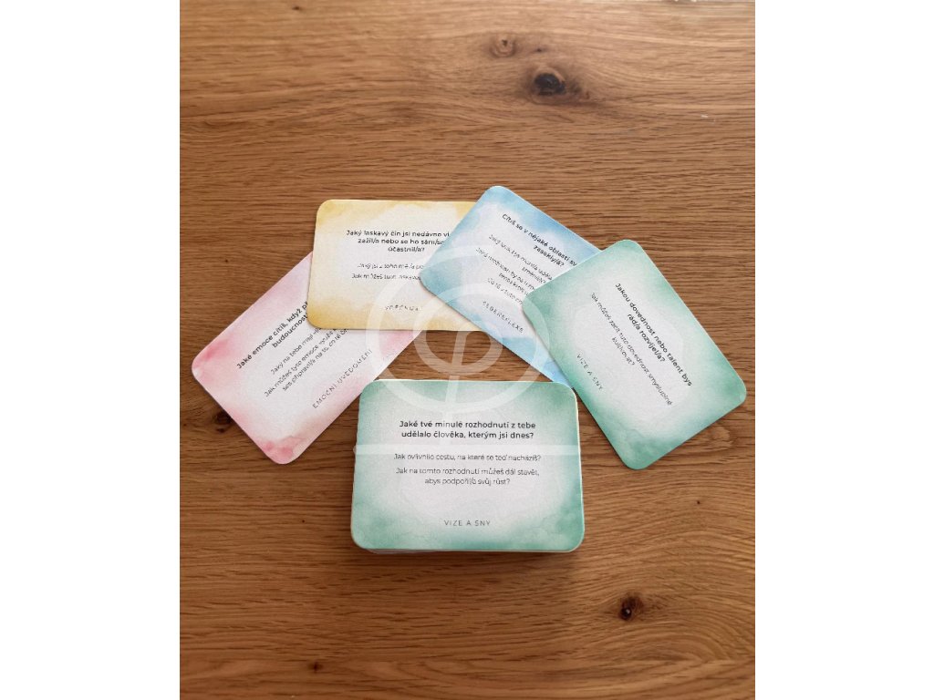 Každá otázka je příležitostí naslouchat svému vnitřnímu hlasu, který často není tak dobře slyšet. Doufáme, že se tyto karty stanou cennou součástí tvých osobních rituálů a pomůžou ti cítit větší klid, rovnováhu a hlubší spojení se svým životem.
