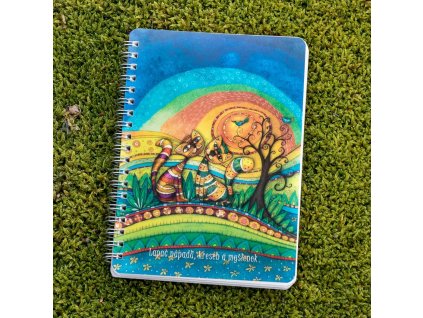 Skicáček velikosti B6 (12,5 x 18 cm) se 50 listy hezkého lehce nažloutlého, linkovaného papíru. Rozteč linek je 8 mm. Přední obálka s obrázkem je ze silného (350 g) křídového papíru. Zadní obálka je z 2 mm silného šedého kartonu bez potisku. Vazba je kroužková – drátěná.