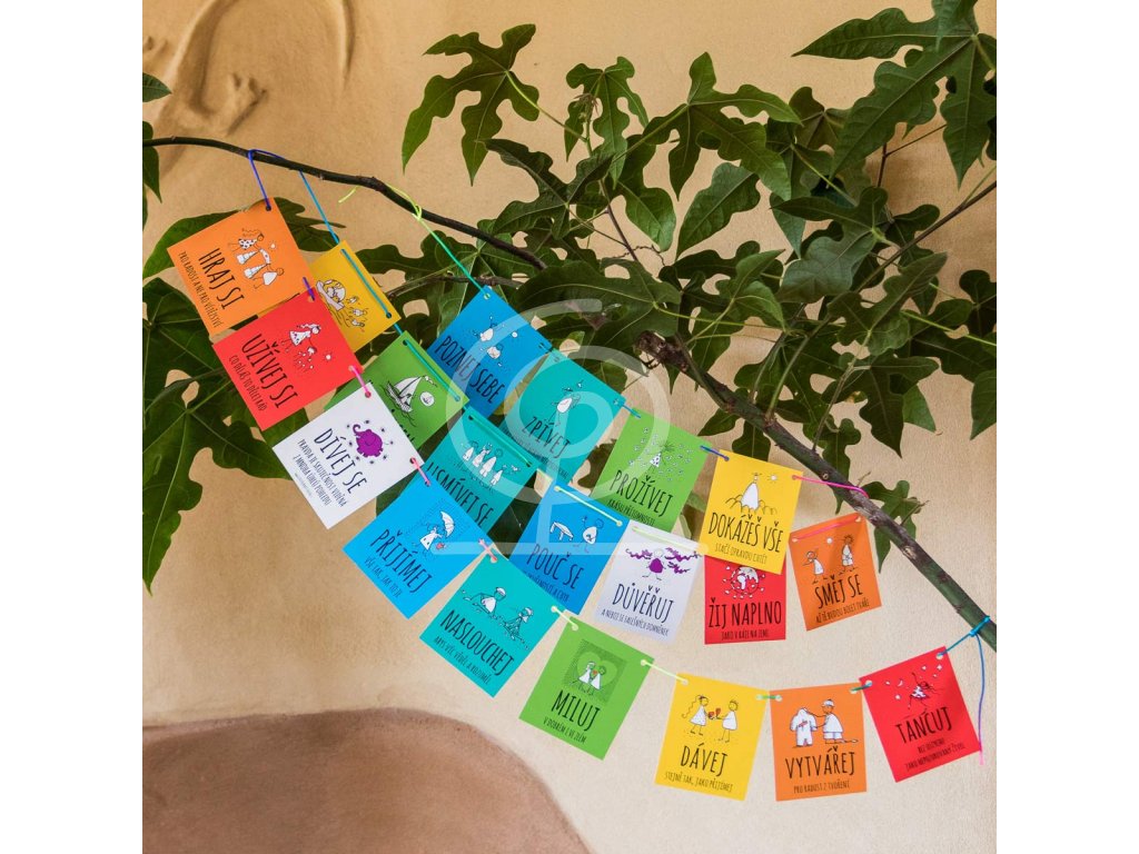 Praporky na sobě nesou 20 různých mot doplněných ilustracemi k pozitivnímu zamyšlení. Jsou to moudrosti známé, ale proč si je občas nepřipomenout.