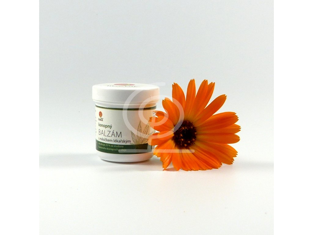 Hojivý balzám s obsahem 25% za studena lisovaného konopného oleje, s extraktem z měsíčku lékařského, s mandlovým olejem, kakaovým máslem, včelím voskem, vitamínem E a silicemi z levandule a pomeranče.Konopný balzám pomůže s hojením záděr, drobných poranění a stroupků, suché popraskané kůže i nehtů zasažených mykózou.
