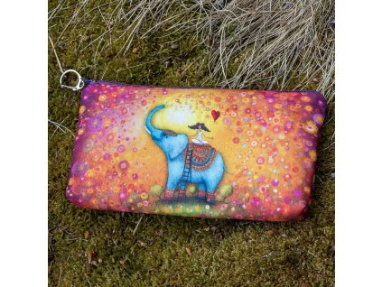 Kapsička na brýle, toaletní potřeby, na malé i větší poklady. Díky karabince se lehce otevírá a dá se připnout do kabelky. Dokonalá na prázdninové cesty, při kterých jsou malé kapsičky na kartáčky na zuby nebo pastelky vždy třeba.Obrázek se jmenuje Lehkost bytí.