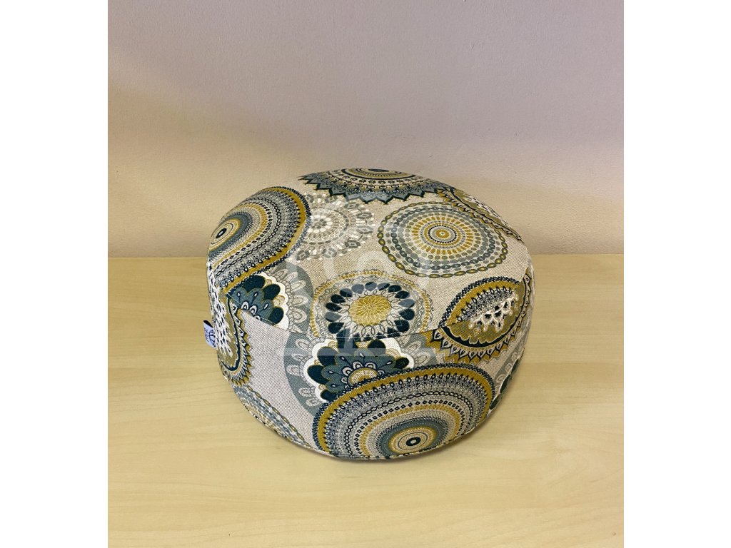 Meditační polštářek pohankový - béžový se zelenožlutými mandalami
