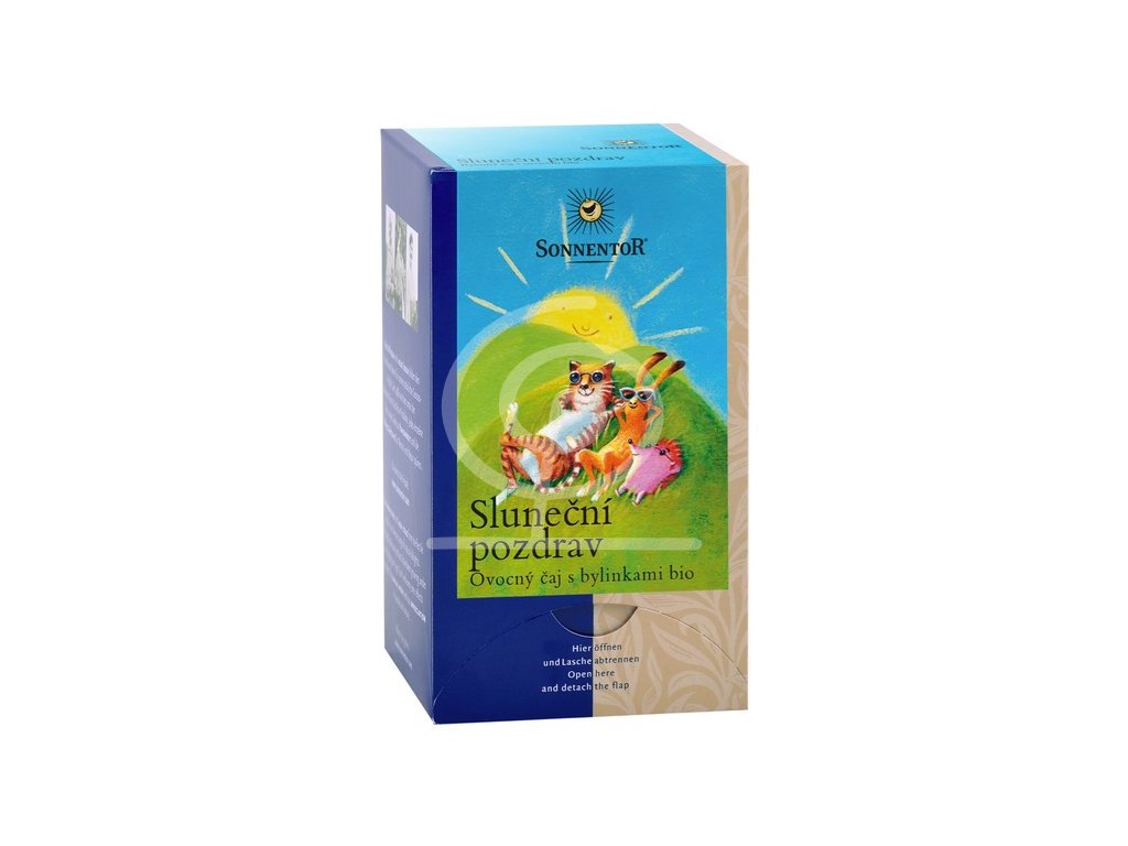 Čaj Sluneční pozdrav v sobě nese tvář slunečních paprsků a je milým pozdravem všem blízkým. Tato jemná ovocno-bylinná směs má velmi harmonickou chuť, je osvěžující a velmi oblíbená u dětí i dospělých.SLOŽENÍ