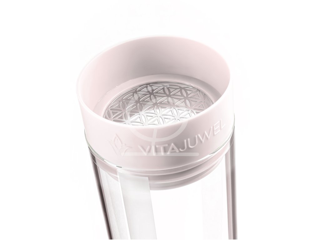 Ornament Květu života zdobí horní víčko karafy. Energetický symbol sestavený z 19 kruhů je vnímán jako harmonizující a má pozitivní vliv na tok vaší energie. Jemné linie Květu života vyrobeného z nerezové oceli jsou v horním víčku karfy Sana propustné, takže při nalévání a doplňování vody nemusíte víčko vyjímat.