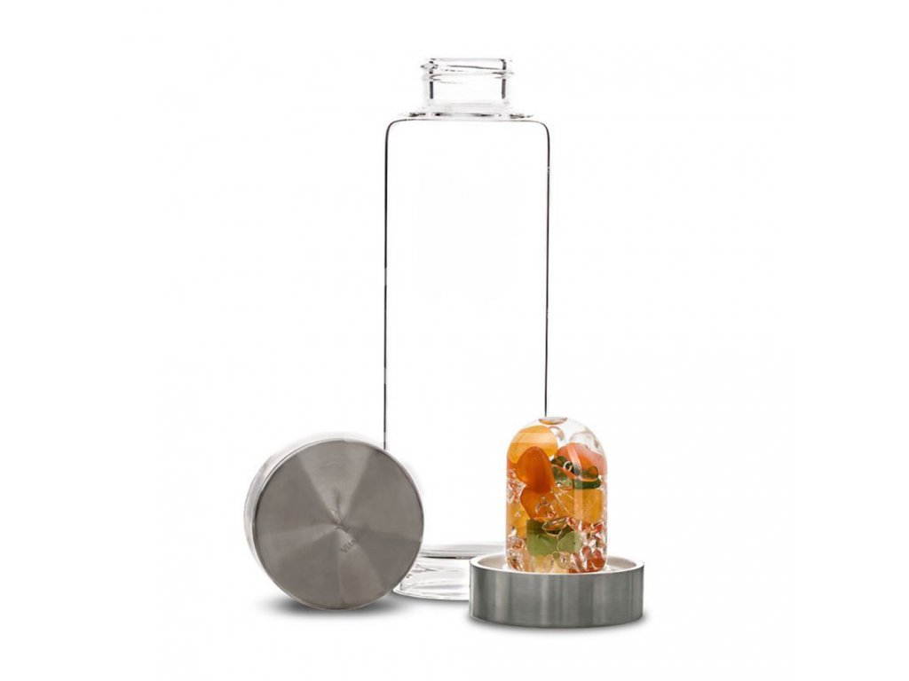 První lahev na vodu sestavená ze dvou uzávěrů. To je lahev ViA. Horní uzávěr pro příjemné píti. Spodní pro snadnost vyčištění a hlavně snadnou záměnu použitých drahokamových modulů. Lahev lze použít pro běžnou teplotu vody, umožňuje rovněž použití i vody vroucí, například pro přípravu čaje.