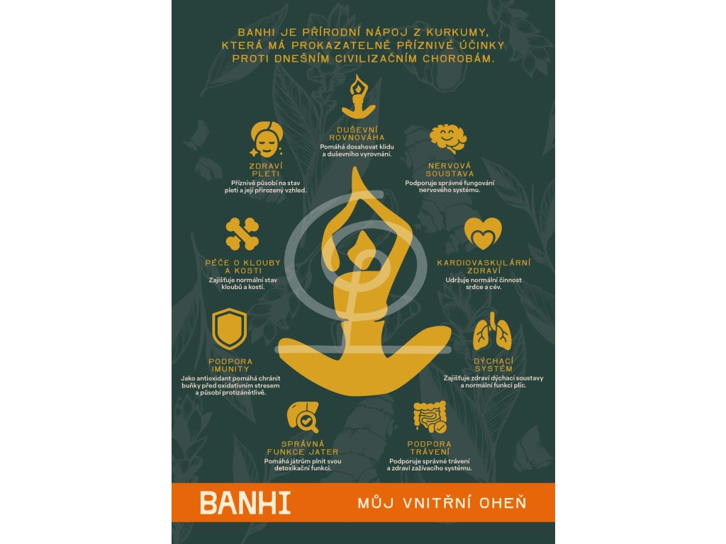 Banhi je přírodní nápoj z kurkumy, která má prokazatelně příznivé účinky na lidský organismus, imuntu a celkové zdraví těla i ducha.