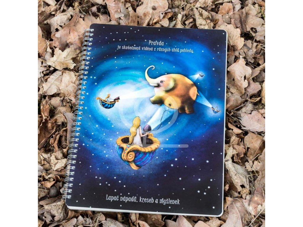 Blok velikosti A4 (21 x 29,7 cm) s 50 listy hezkého lehce nažloutlého, linkovaného papíru. Rozteč linek je 8 mm. Přední obálka s obrázkem je ze silného (350 g) křídového papíru. Zadní obálka je z 2 mm silného šedého kartonu bez potisku. Vazba je kroužková – drátěná.